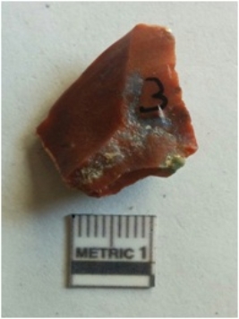 | Description / विवरण | The flake has a mid rib due to flaking and negative bulb of percussion. The flake has a backed end. |