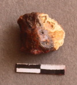 | Description / विवरण | It is a Jasper fragment. With cortex covered almost all sides but two surface calcium deposition on the cortex, translucent and band formation on the open flaked side. |