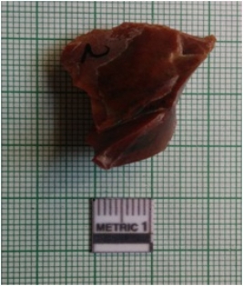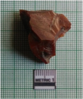 | Description / विवरण | The flake has surfacial flake scars and truncated flaking for retouch. Jasper flake is dark brown in color with median ridges. |