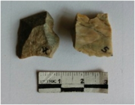 | Description / विवरण | The chert piece has flaked ends and negative flake scars on the surface. This piece has sharp edge and ground pointed ends. The piece has ripple marks but a clear bulb of percussion is absent. |