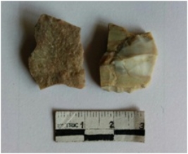 | Description / विवरण | The chert piece has flaked ends and negative flake scars on the surface. This piece has sharp edge and ground pointed ends. The piece has ripple marks but a clear bulb of percussion is absent. |