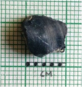 | Description / विवरण | The dark green jasper fragment has a negative bulb of percussion and flaked in roughly triangular shape. |