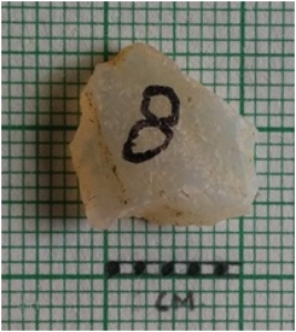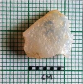 | Description / विवरण | Quartz piece with sharp edges and flake scars Ripples marks visible on the piece. |