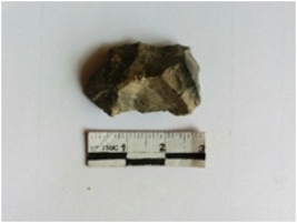 | Description / विवरण | The chert piece has median ridge due to flaking. Positive bulb of percussion is visible. |