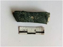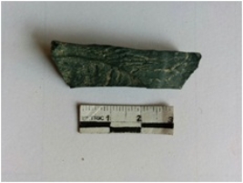 | Description / विवरण | The chert flake is an elongated piece with a grounded pointed end and tapering edges. A bulb of percussion is visible on the surface. |