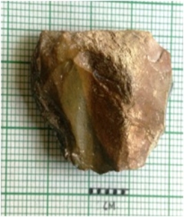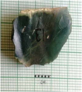 | Description / विवरण | The piece has calcified and has a siliceous core. The product is a bi-product of lithic manufacture as no clear flaking is visible on the surface. The piece has green core with flaking. |