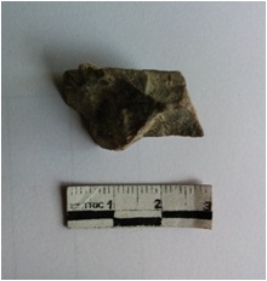 | Description / विवरण | The chert piece is a cryptocrystaline piece, pale brown in color. The piece has negative flake scars, sharp edges and negative bulb od percussions as a result of flaking. |