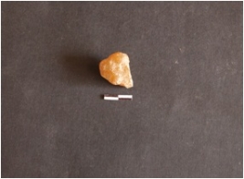 | Description / विवरण | The chalcedont piece has rounded edges and a sharp flaked end. The piece is dark yellow-orange in colour. The piece is semi-transparent. |