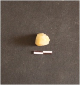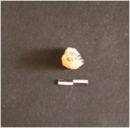 | Description / विवरण | Agate core fragment has blade scars, flake scars and prepared platform. |