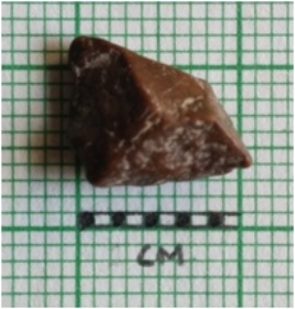 | Description / विवरण | The flake is roughly rectangular in shape with angular edges and sharp ends. The piece has flaked ridges and flake scars. |