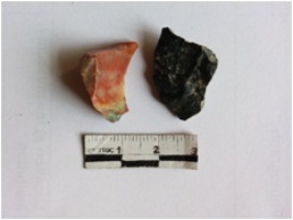 | Description / विवरण | The jasper fragment has cortex on one end and prominent ridges. The piece has negative flake scars and sharp edges. |
