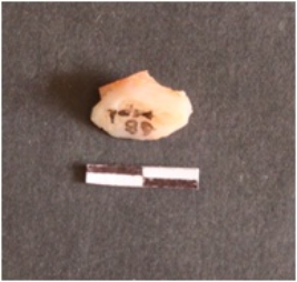 | Description / विवरण | The chalcedony fragment has sharp ends and flaked surfaces. |