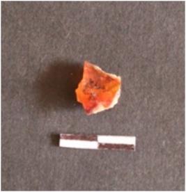 | Description / विवरण | The Chalcedony flake has a negative bulb of percussion and a sharp angular edge. |