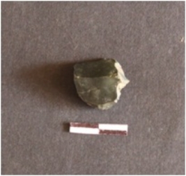 | Description / विवरण | The chert flake has a broad flaked edge and a rounded basal part with a shallow bulb of percussion. |