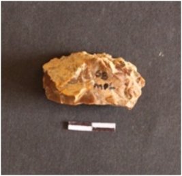 | Description / विवरण | The chert flake has numerous flake scars and retouches on its surface. The piece hasn sharp edge and a bulbous base. |