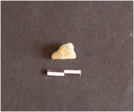 | Description / विवरण | Quartz piece with a negative bulb of perrcussion and sharp angular ends. |