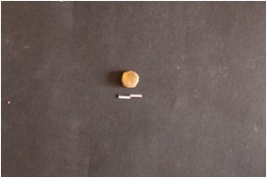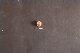 | Description / विवरण | The chalcedony piece is round in shape, with numerous flake scars and a shallow bulb of percussion on the ventral side. |