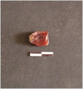 | Description / विवरण | The chert piece is quadrilateral in shape, with sharp edges and a prominent bulb of percussion. |
