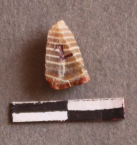 | Description / विवरण | It is a banded agate. Cortex on one end of the corner. It has sharp edges with pointed ends. |