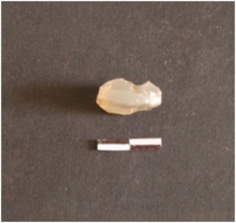 | Description / विवरण | Chalcedony core has prepared platform blade scars and flake scars on surface. |
