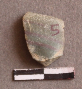 | Description / विवरण | Flake of jasper, with thin red baud, bulb of percussion, flake ridges. |