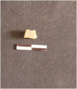 | Description / विवरण | The chert flake has parallel sides and angular ends. The edges show use - wear. |