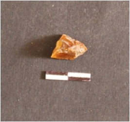 | Description / विवरण | A chalcedony core with flake scars and a platform. |