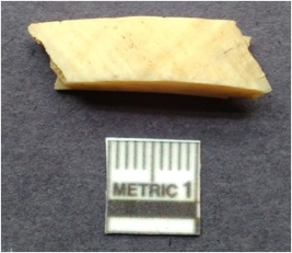 | Description / विवरण | The flake is flat and a product of secondary flaking activity. The piece has a bulb of percussion and sharp tapering edges. |