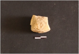 | Description / विवरण | The chalcedony chunk has numerous flake scars and is roughly cuboidal n shape. |