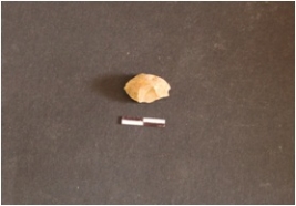 | Description / विवरण | The chert flake is roughly semi-circular in shape, with a negative bulb on one side of the flake. The piece has sharp edges and a thick basal part. |