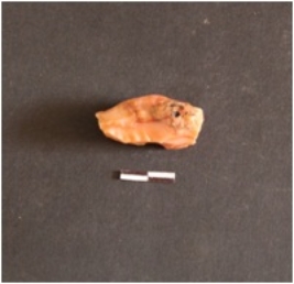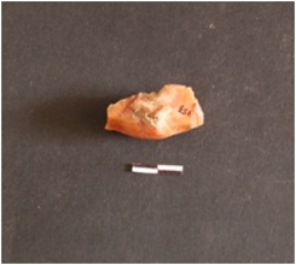 | Description / विवरण | Carnelian core having prepared platform, crested ridges, blade scars, partly visible cortex and heated. |