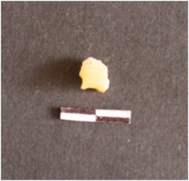 | Description / विवरण | The carnelian piece has numerous surfacial flake scras. It has a pointed end and a sharp edge. |