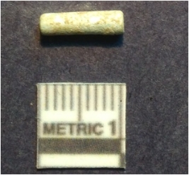 | Description / विवरण | It is a shell circlet, broken. Unfinished and unpolished, saw cut marks on the surface. Natural shine in the internal surface, whitish in color. |