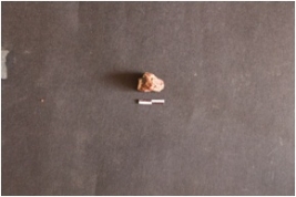 | Description / विवरण | The chert piece is a waste product of lithic knapping. It has rounded edges and a sharp angular side. |