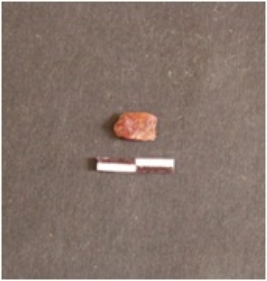 | Description / विवरण | The carnelian flake has a bulb of percussion on one end and has parallel sides; resembling a blade. |