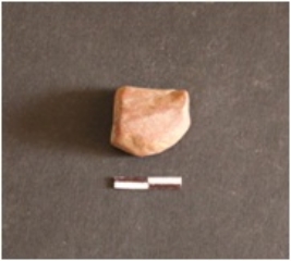 | Description / विवरण | The chert piece is a flat piece with rounded edges as a result of deposition, and some flake scars. |