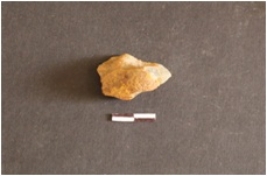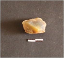 | Description / विवरण | The chalcedony flake has a sharp end with numerous flake scars and a bulb of percussion. |