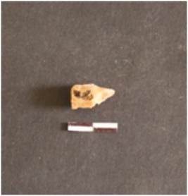 | Description / विवरण | The chert flake has sharp edges with pointed ends and a truncated end. The chert flake has negative flake scars on the surface. |