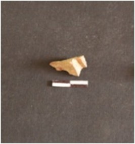 | Description / विवरण | The chert piece has a pointed end and a flat truncated base. The piece has numerous flake scars on the surface. One side of the piece is flat. The piece is a bi-product of lithic knapping. |