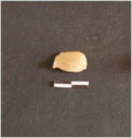 | Description / विवरण | The chalcedony flake has a bulb of percussion on one end and sharp parallel sides. |