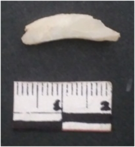 | Description / विवरण | It is a shell roughout, medium in size and unfinished and unpolished. Pale whitish in color. Saw cut marks on the surface. |