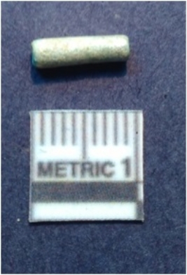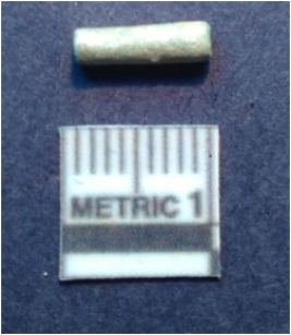 | Description / विवरण | It is a shell roughout, medium in size and unfinished and unpolished. Pale whitish in color. Saw cut marks on the surface. |
