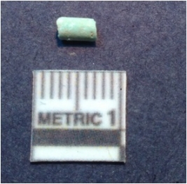 | Description / विवरण | It is a shell roughout, medium in size and unfinished and unpolished. Pale whitish in color. Saw cut marks on the surface. |