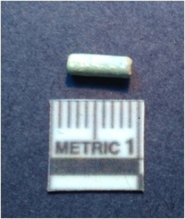 | Description / विवरण | It is a shell roughout, medium in size and unfinished and unpolished. Pale whitish in color. Saw cut marks on the surface. |