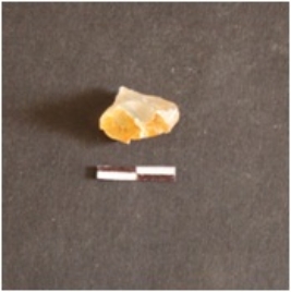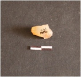 | Description / विवरण | The chalcedony piece has flaked ends and a pointed end. |