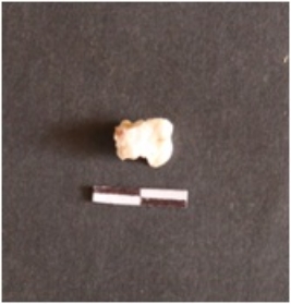 | Description / विवरण | The chalcedony piece has a negative bulb of percussion and sharp edges with use-wear. |