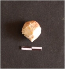 | Description / विवरण | The Agate piece has a pointed end and a rounded edge. The surface has flake scars. The other surface has a negative flake scars. |