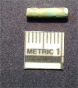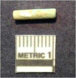 | Description / विवरण | It is a shell circlet fragment, broken from one end. Saw cut marks visible on the surface. Unfinished and unpolished. Dull white in color. Having natural glossy on the interior surface. |