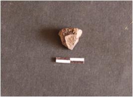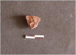 | Description / विवरण | The chalcedony fragment has rounded edges and a flaked end. The surface has numerous flake scars. |