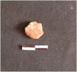| Description / विवरण | The chalcedony piece is a by product of lithic knapping. It has angular ends and flake scars on the surface. |
